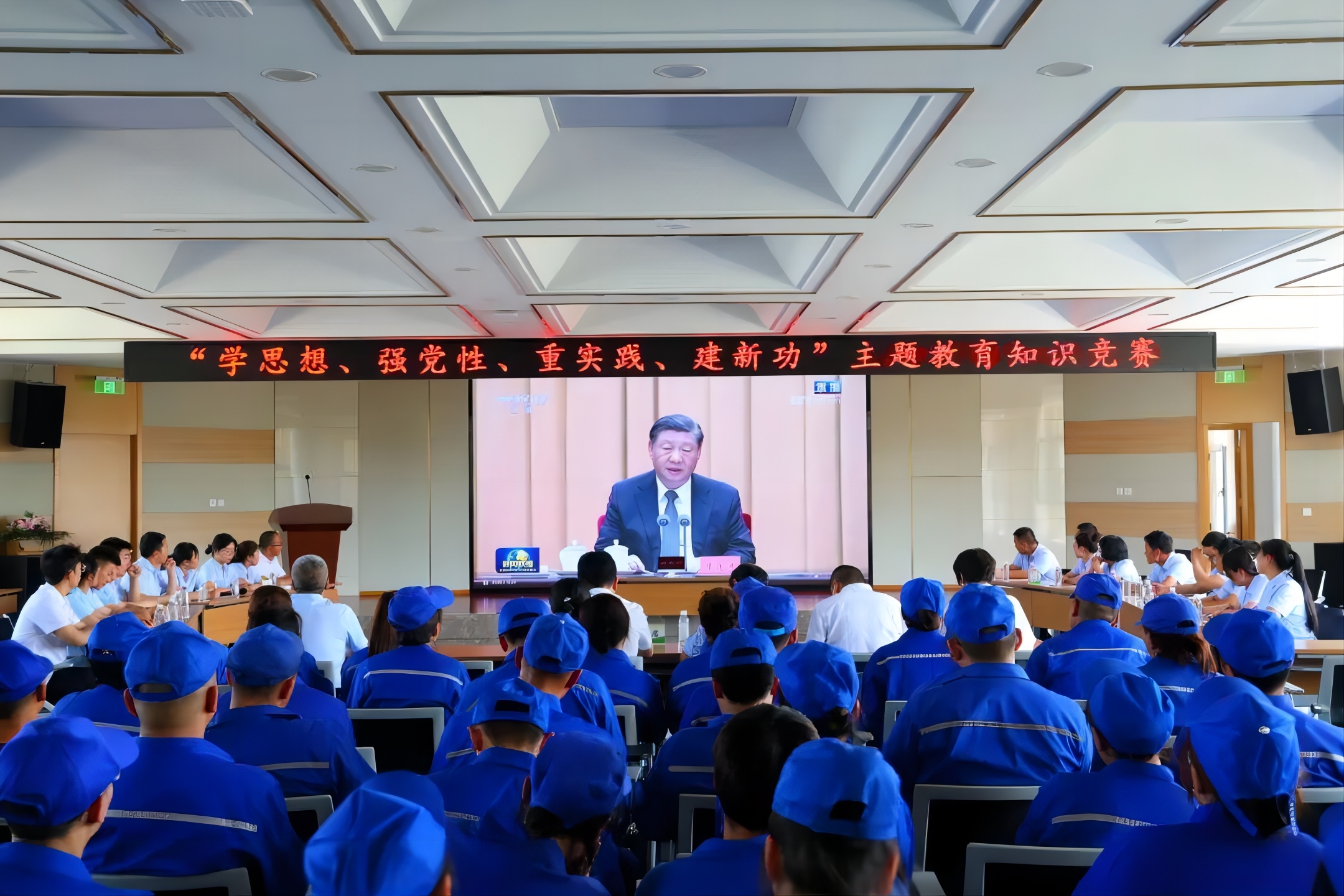 比賽開始前,公司黨委書記、董事長康永紅組織全體參加活動人員共同觀看了習近平總書記在學習貫徹習近平新時代中國特色社會主義思想主題教育工作會議上的現場講話視頻,進一步提升公司職工對主題教育“學、思、悟、透”的能力水平,確保主題教育走深走實。